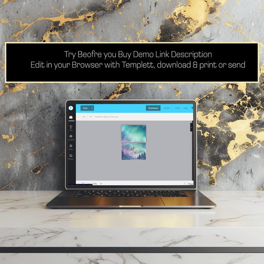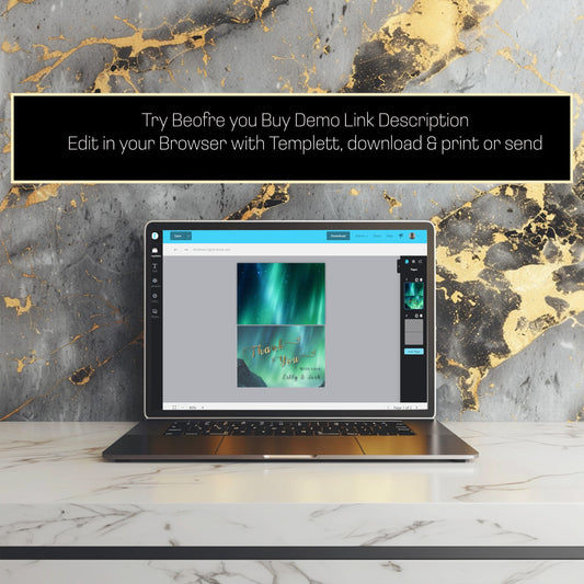 Aurora Borealis Thank You Card: Gold Lettering, Editable Template (5x3.5in)