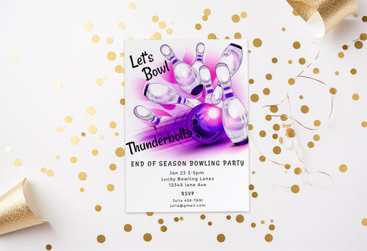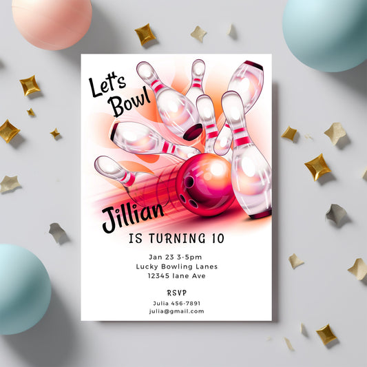 Bowling Party Invitation | Editable 5x7 Digital Template | Kids, Teens & Adult Birthday Invite