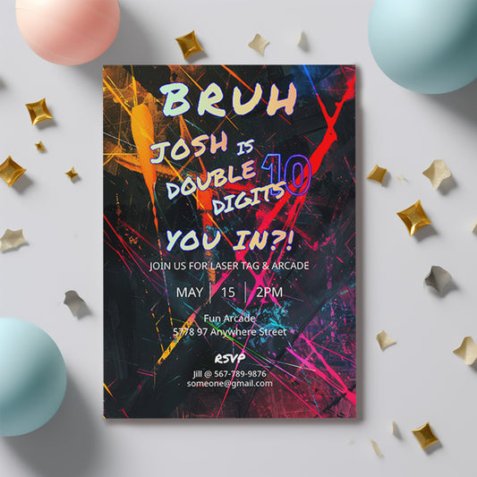 Bruh Double Digits Birthday Invitation – Editable 10th Birthday Template for Boys