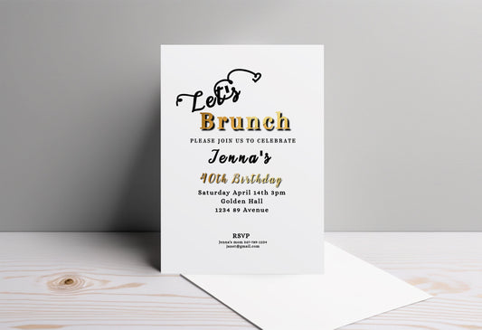 Brunch Birthday Invitation - Editable Invitation Template with Gold Foil Lettering 5x7 Inch