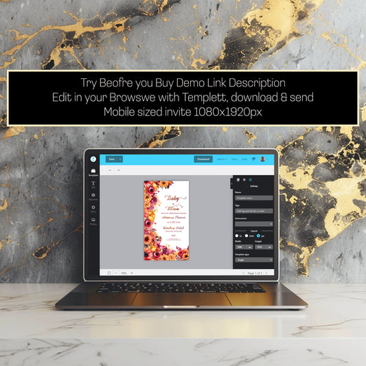 Blue Floral Baby Shower Invitation | Alcohol Ink Editable Template | Baby in Bloom Digital Download