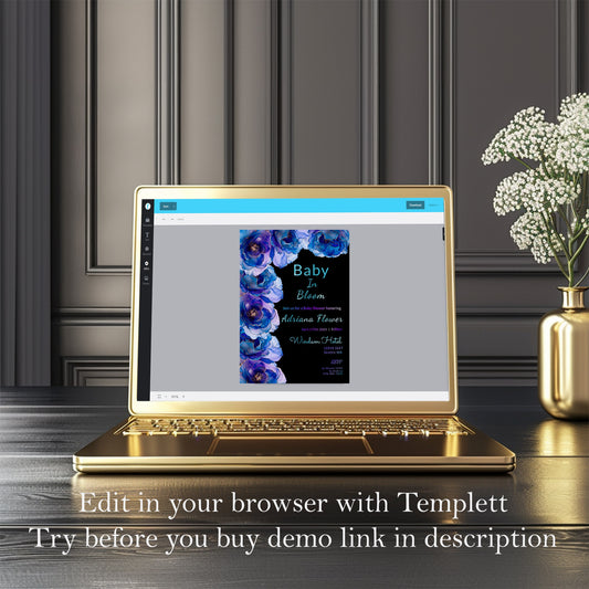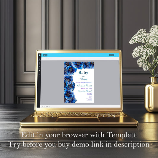 Blue Baby in Bloom Shower Bundle | Editable Invitations, Signs & Cards | Alcohol Ink Templates