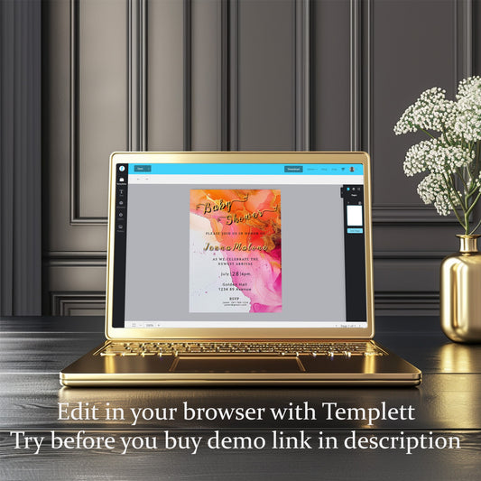 Hot Pink Floral Baby Shower Invitation – Alcohol Ink Editable Template