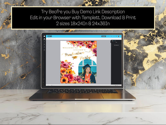 Floral Graduation Welcome Sign – Editable Arch Poster with Photo