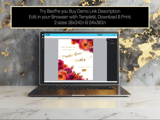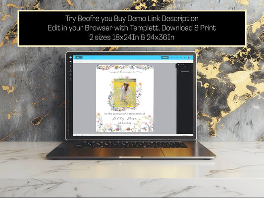 Floral Graduation Welcome Sign – Editable Arch Poster with Photo