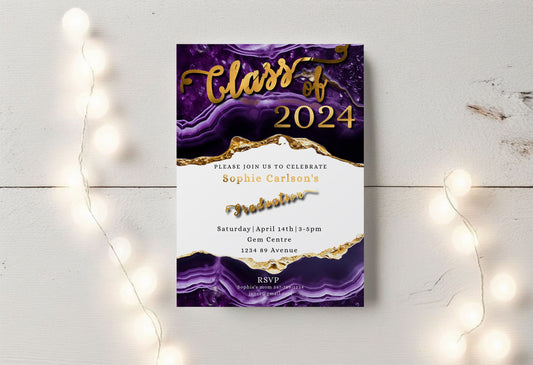 Purple Gold Graduation Invitation - Editable Graduation Invite With Geode Style