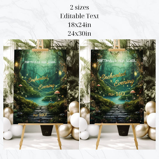 Enchanted Forest Welcome Sign – Editable Prom Poster with Gold Foil Lettering