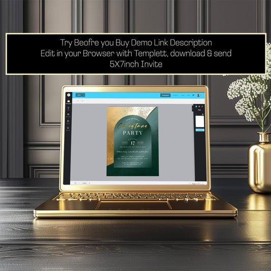 Emerald Green and Gold Christmas Holiday Party Invite 5x7 - Instant Download, Formal party invitation