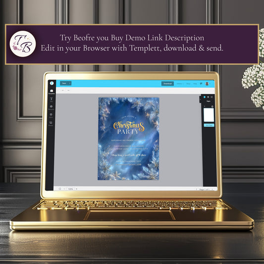 Winter Wonderland Invitation – Editable Blue Gold Snowflake Holiday Party Template