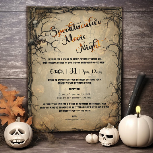 Horror Movie Night Invitation: Spooky Halloween Printable 5x7 Editable Template