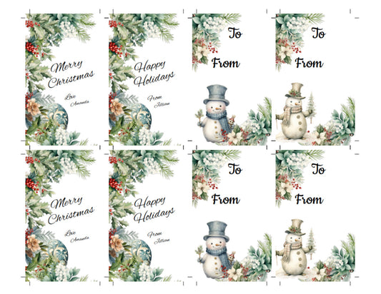 Customizable Christmas Gift Tags -Holiday gift tags editable-Printable, Personalized, Digital Download