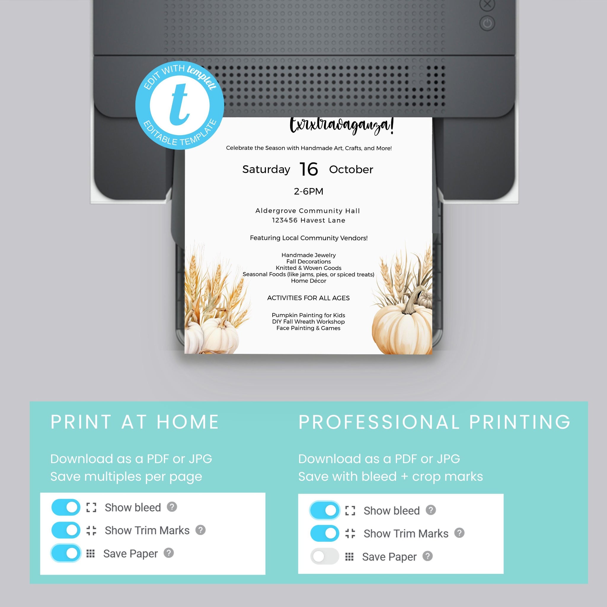 Make your Fall Craft Fair or Market a success with our Flyer Template. Our fully editable design features a a fall pumpkin theme with stand out fonts, creating a stylish and memorable Flyer to promote your event. You'll receive an 8.5x11in Letter Size Flyer template that is fully editable in your browser and then Print off at home or a printer.