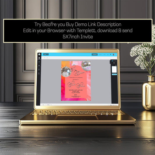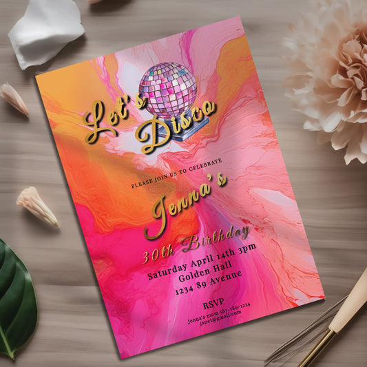 Disco Birthday Invitation: Hot Pink, Orange, and Gold (Printable)