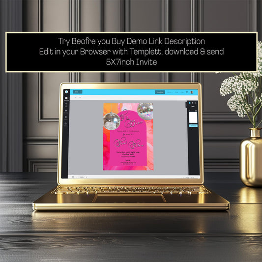 Retro Disco Birthday Invitation - Printable Hot Pink Orange Invite With Gold Foil