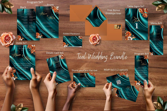 Terracotta & Teal Wedding Invitation Suite | Burnt Orange Floral Editable Stationery Bundle | Printable Wedding Templates