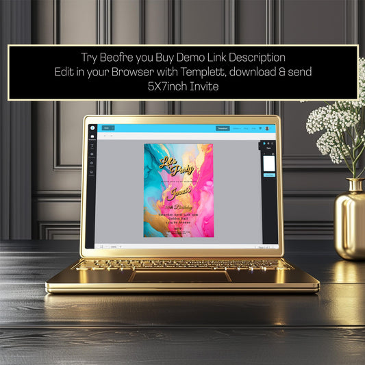 Hot Pink, Teal & Gold Birthday Editable Invitation 5x7in -brunch invite-Editable, Printable - style