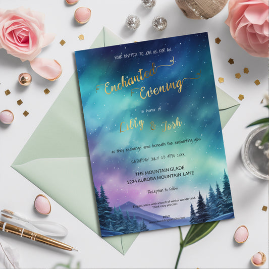 Northern Lights Wedding Invitation | Aurora Borealis Editable Template