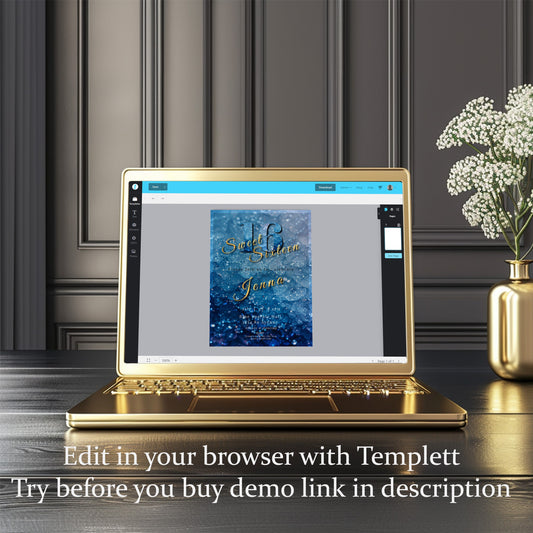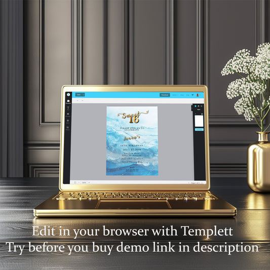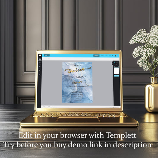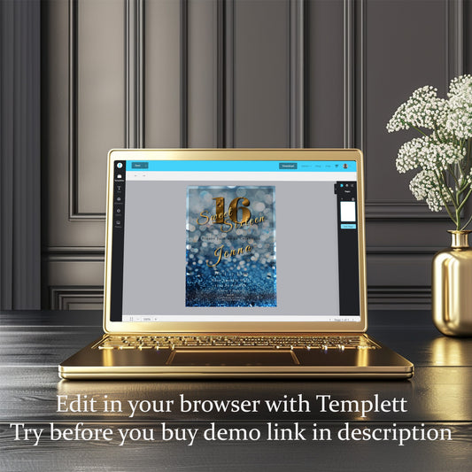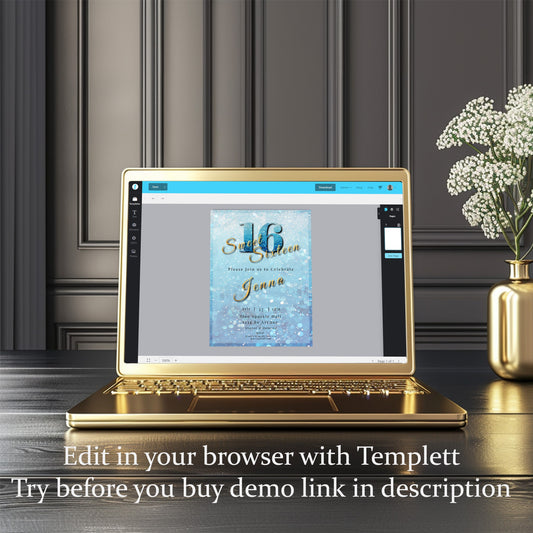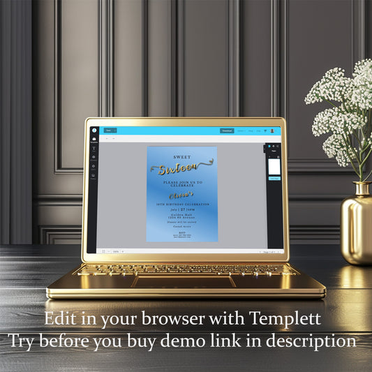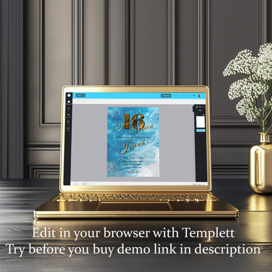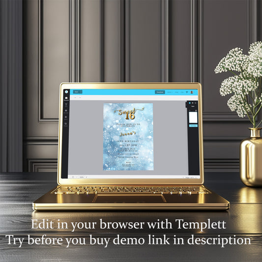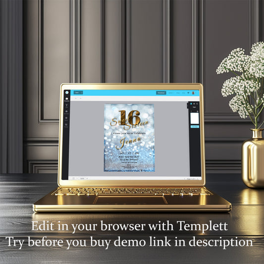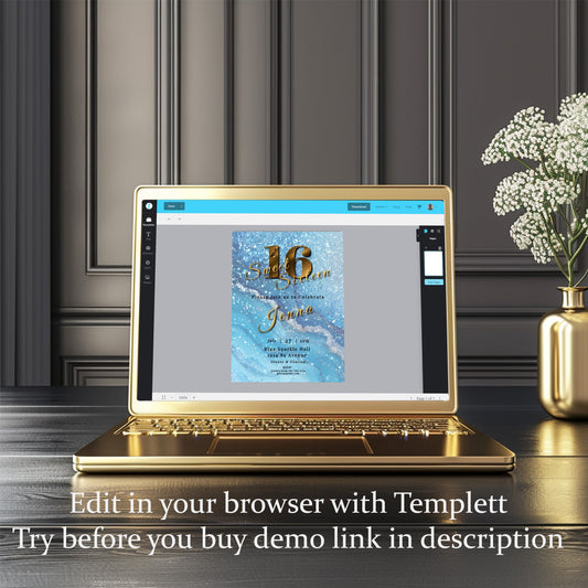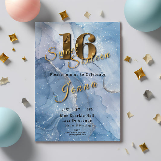 Sweet 16 Invitation Light Blue- blue and Gold-Editable template-Evite-Printable-Blue birthday invite