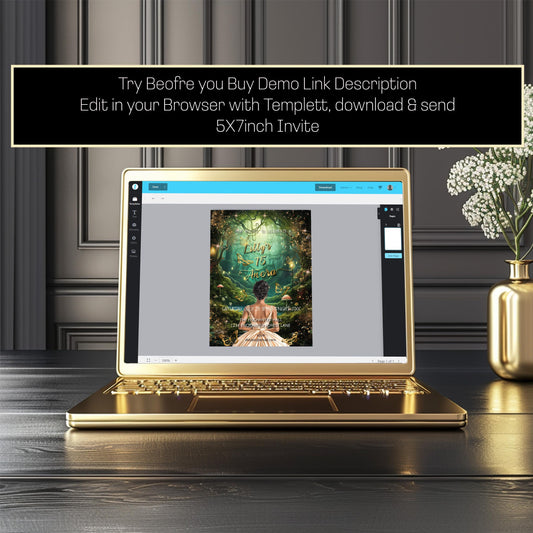 Quinceañera Invitation Template – Editable Forest Theme Invite | Green Gold Design