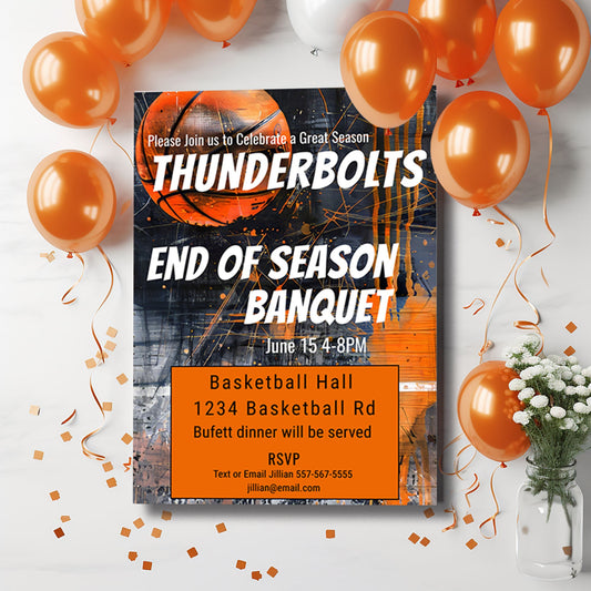 Basketball Banquet Invitation: End of Season Party, Editable 5x7 Template