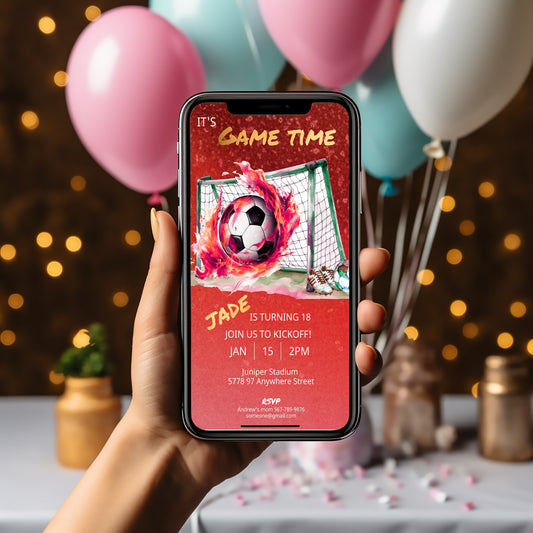 Soccer Birthday Invitation – Mobile Editable Sports Party Template