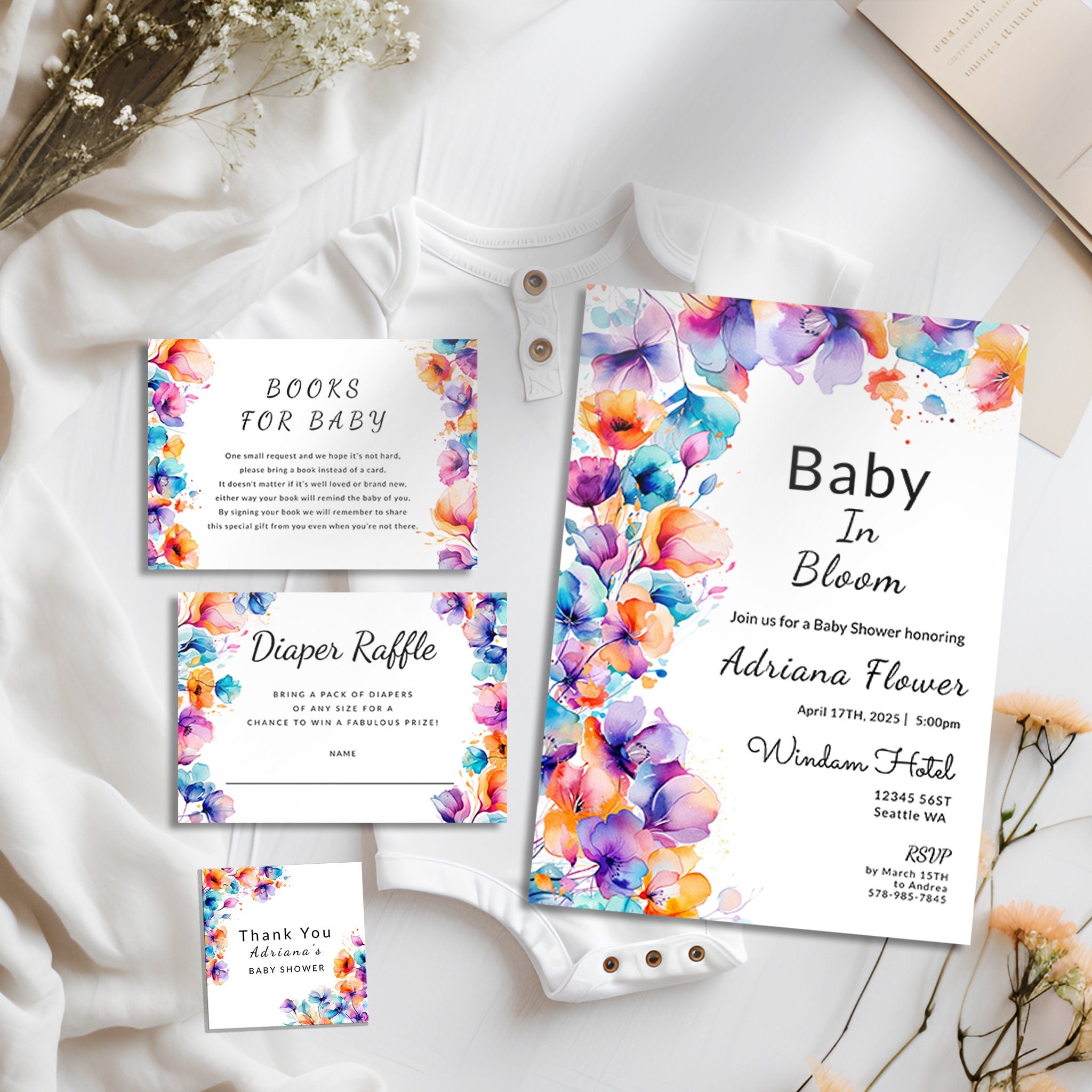 This baby shower invitation set offers a beautiful baby shower invitation designed to celebrate your little one with a spring floral bundle that brings fresh watercolor wildflower charm to your event. The editable invitation template lets you personalize every detail, ensuring a customizable baby shower set that fits your style perfectly and creates a memorable garden party atmosphere. With instant download invitations, you gain immediate access to a complete suite including matching baby shower cards that elevate your celebration with coordinated elegance.