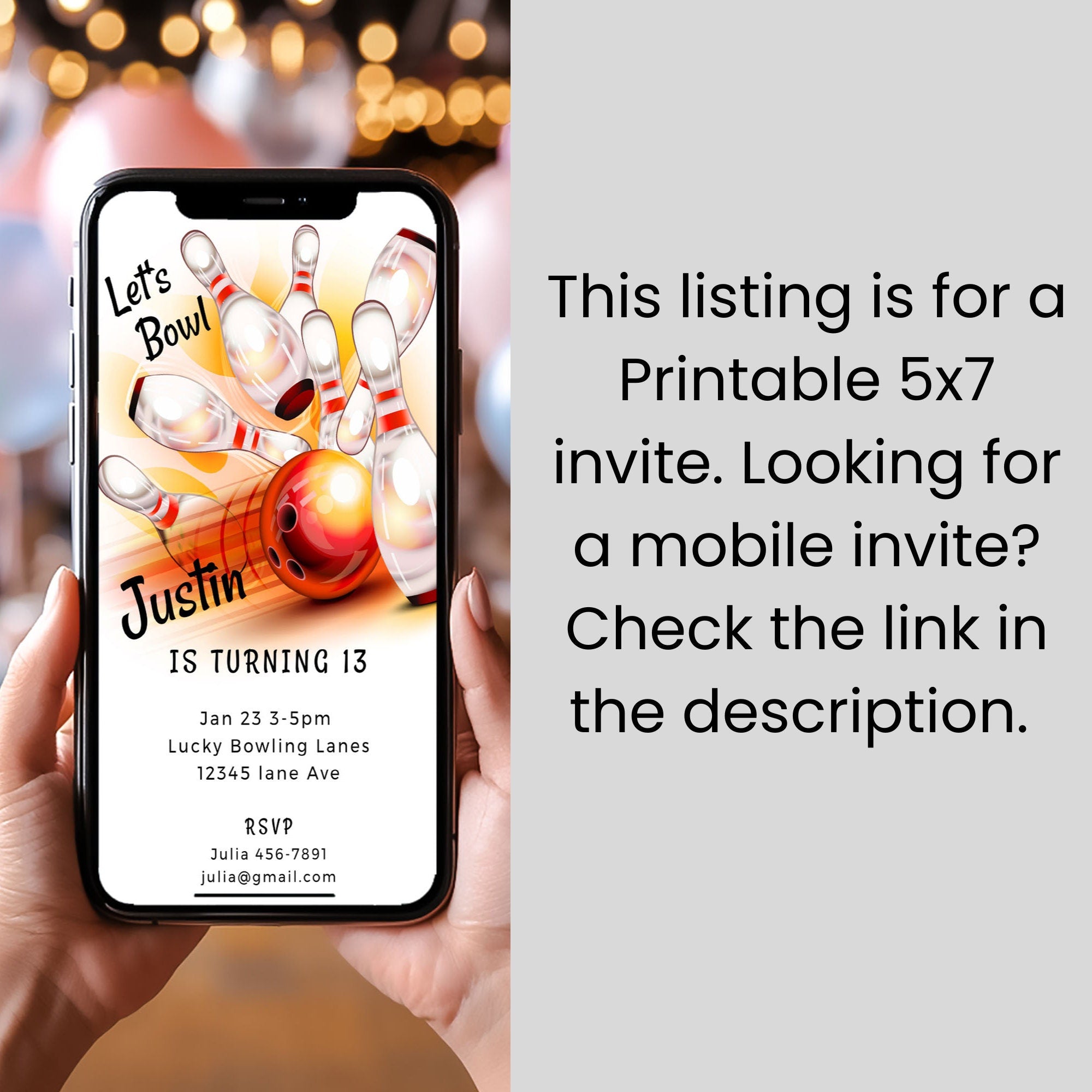 Bowling Party Invitation – Editable Kids, Teen & Adult Birthday Template