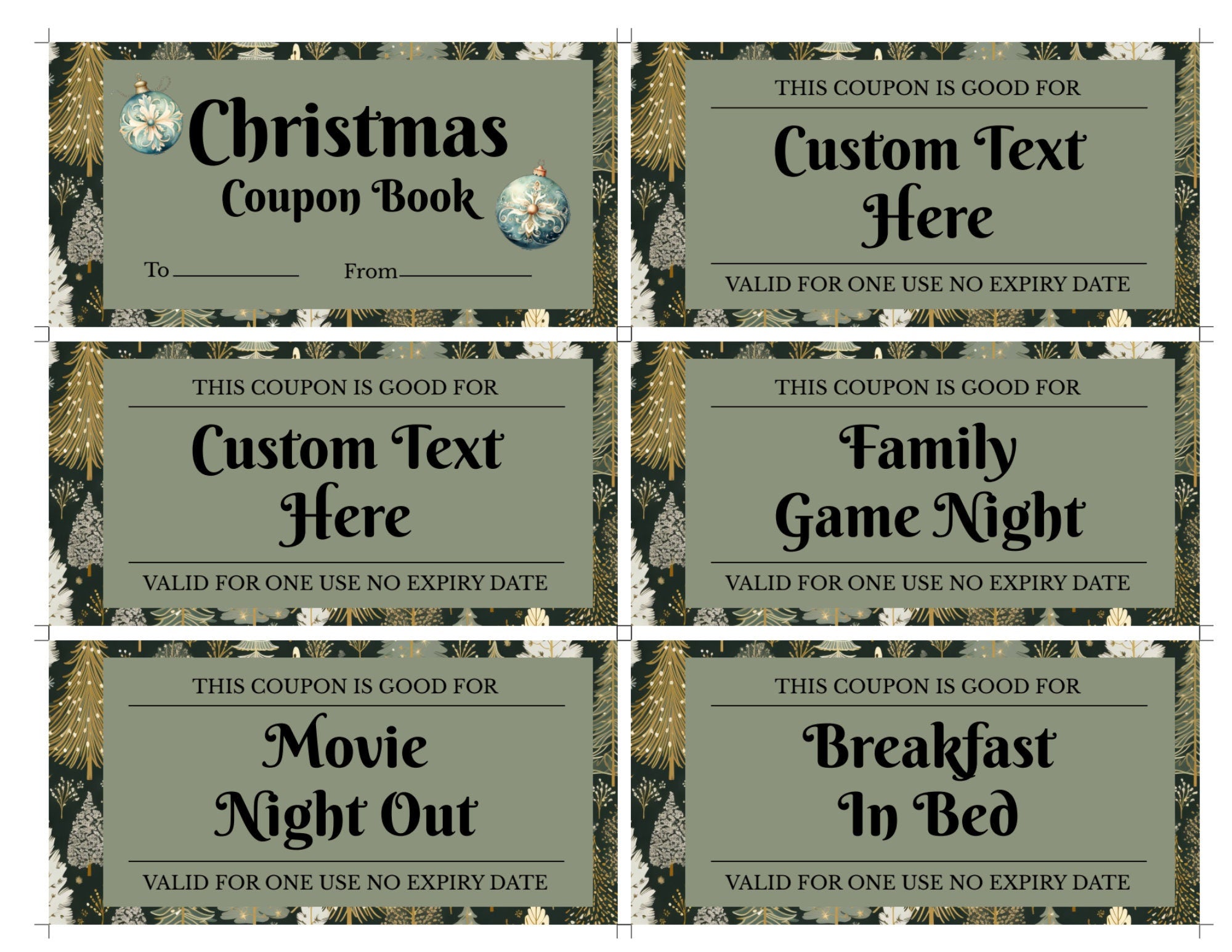 - Cut out the coupons and assemble them into a charming Christmas coupon book