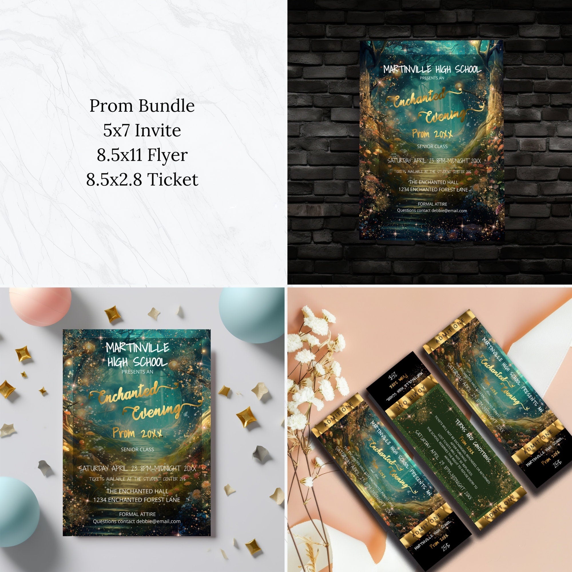 Enchanted Forest Prom Bundle | Invitation, Flyer & Ticket Editable Templates