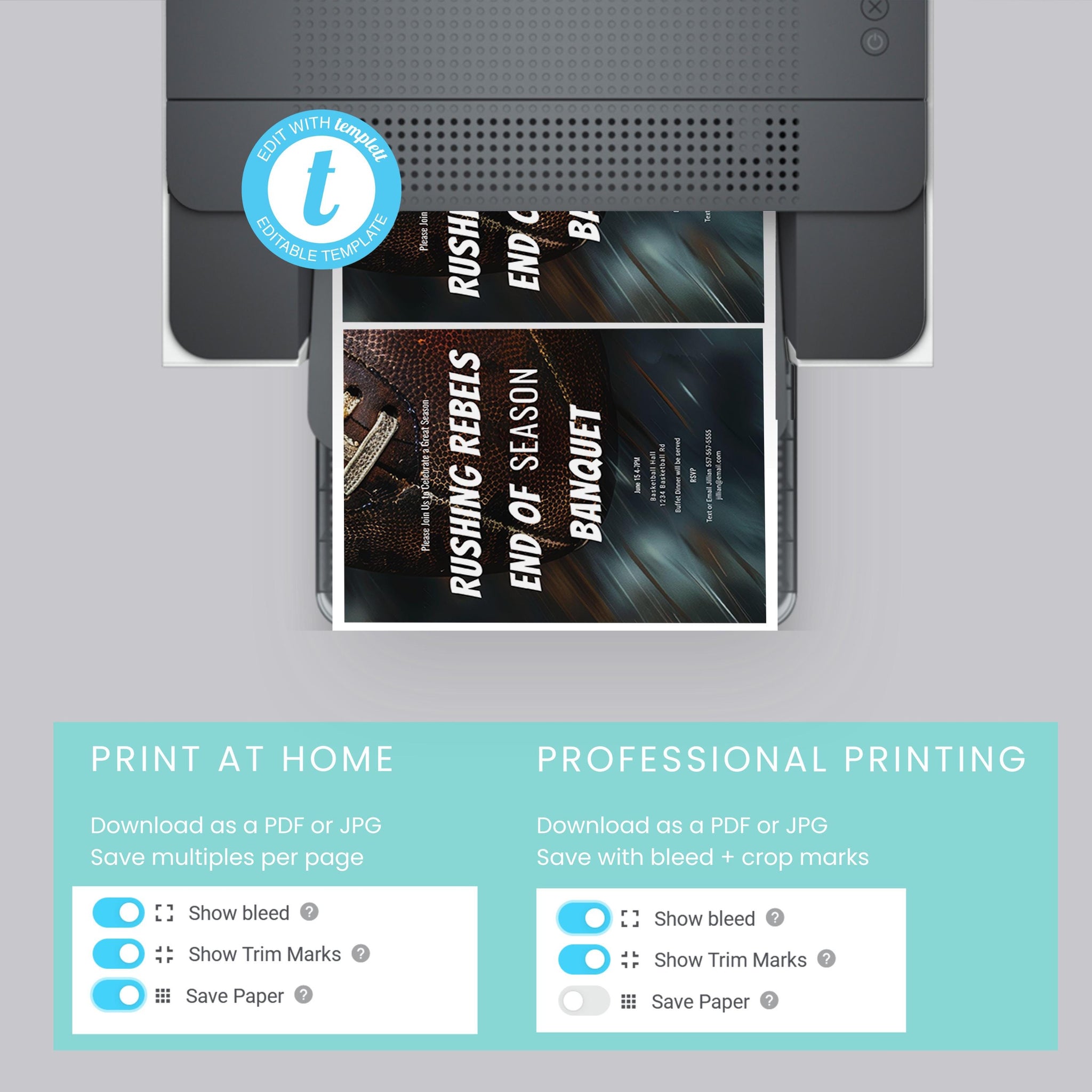 End of Season Sports Banquet Invitation – Editable Football Team Party Template