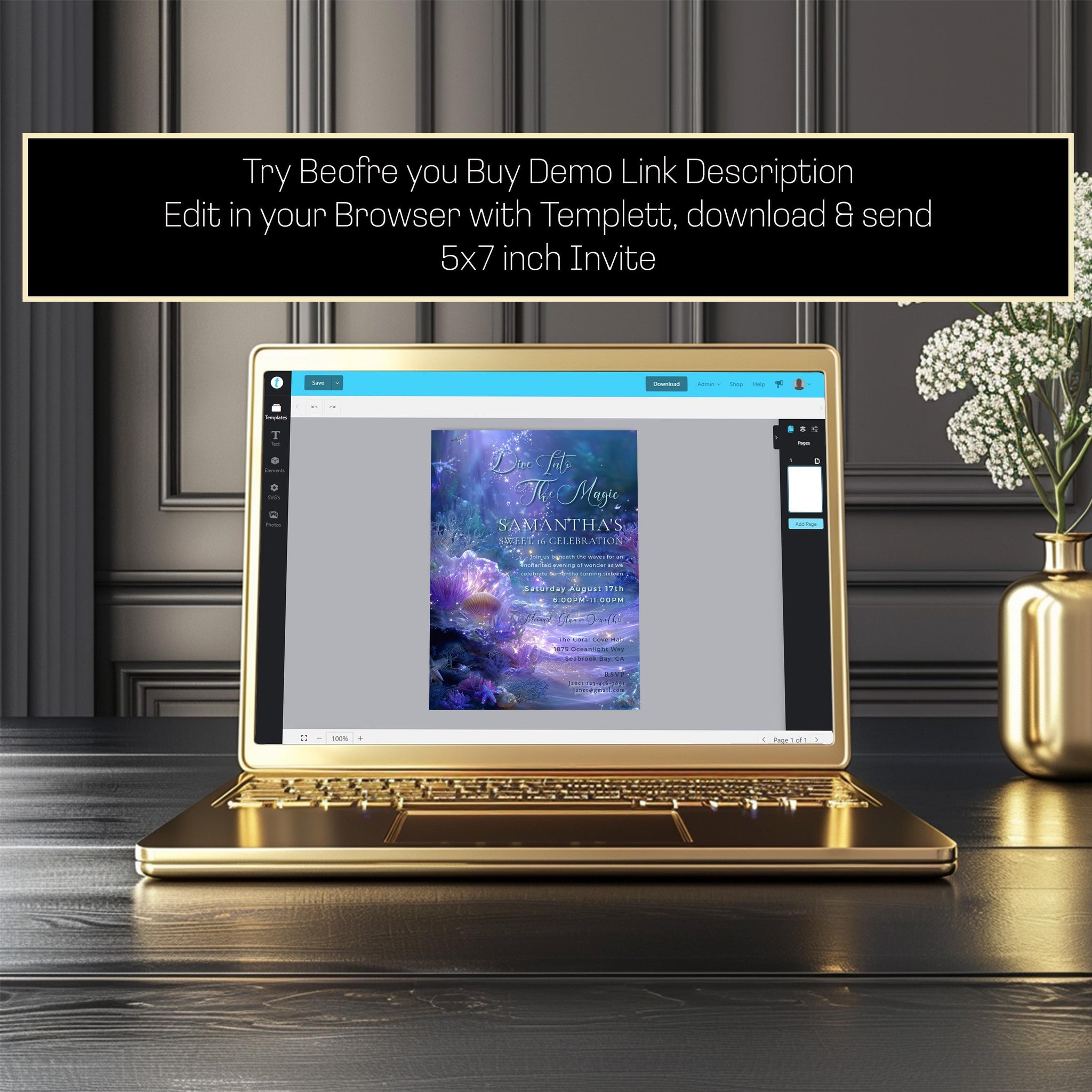 This Under the Sea Sweet 16 Invitation features dreamy under the sea-inspired artwork and elegant fantasy fonts — perfect for an unforgettable birthday. Instantly edit the template using Templett right in your browser — no software required!