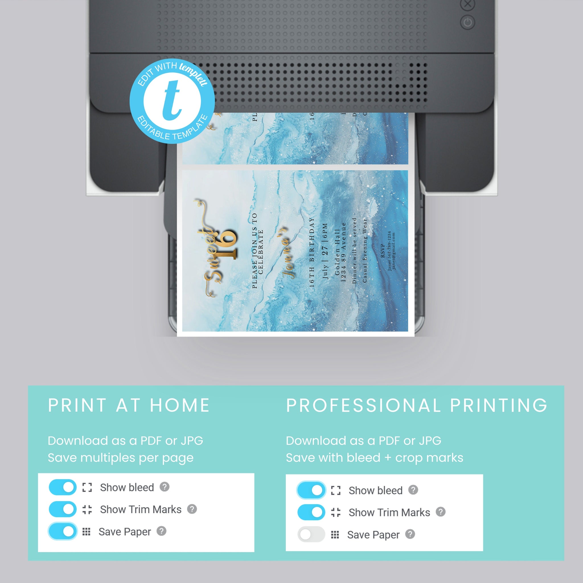 Instantly customize and download after purchase - no waiting, no shipping.