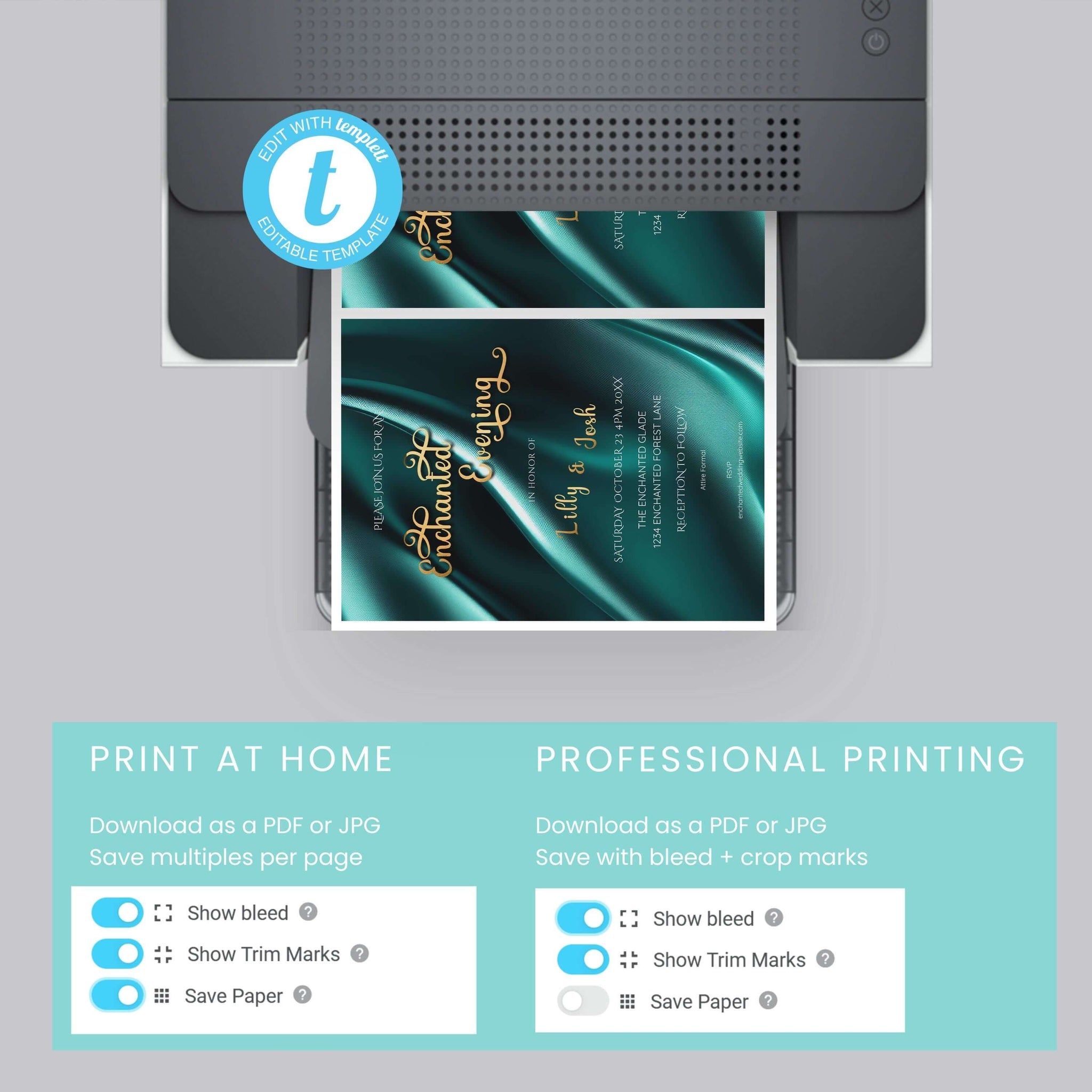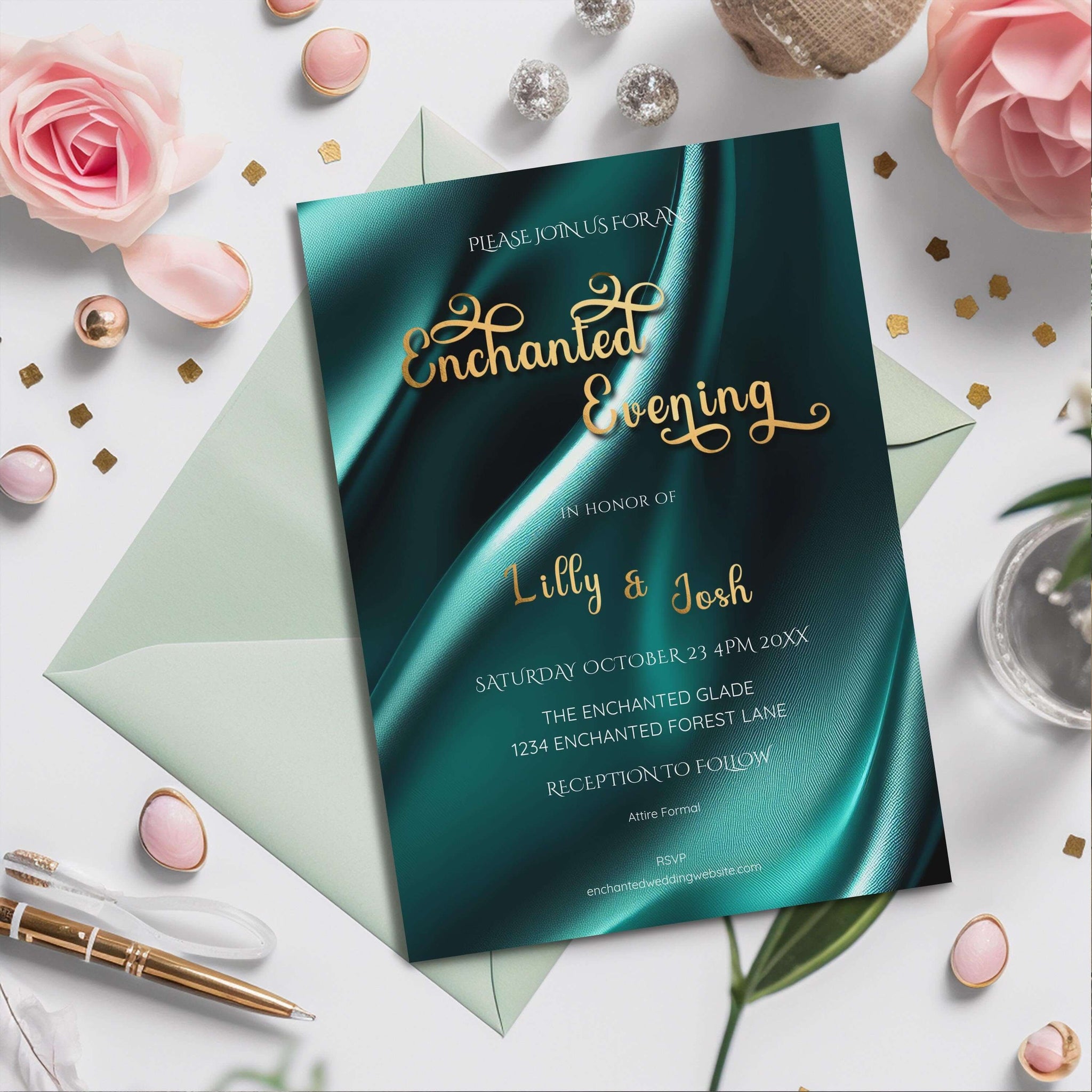 Teal & Gold Wedding Invitation | Elegant Enchanted Evening Template | Editable 5x7 Digital Download